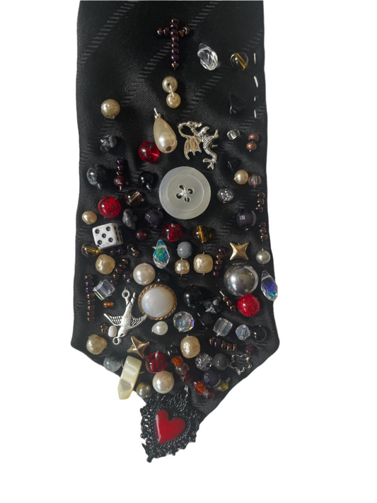 Black Beaded Gothic Heart Tie