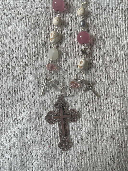Pink and White Cross Pendant